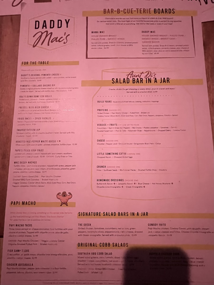 Food standout dishes include the coveted pulled pork and the indulgent burnt ends mac n cheese, which have left visitors like Yoly craving more. If you prefer a lighter option, try the creative build-your-own salad in a jar, showcasing fresh ingredients and unique flavors. And for those late-night cravings, Daddy Mac's does not disappoint with a menu that surprises and delights even the most discerning food lovers.