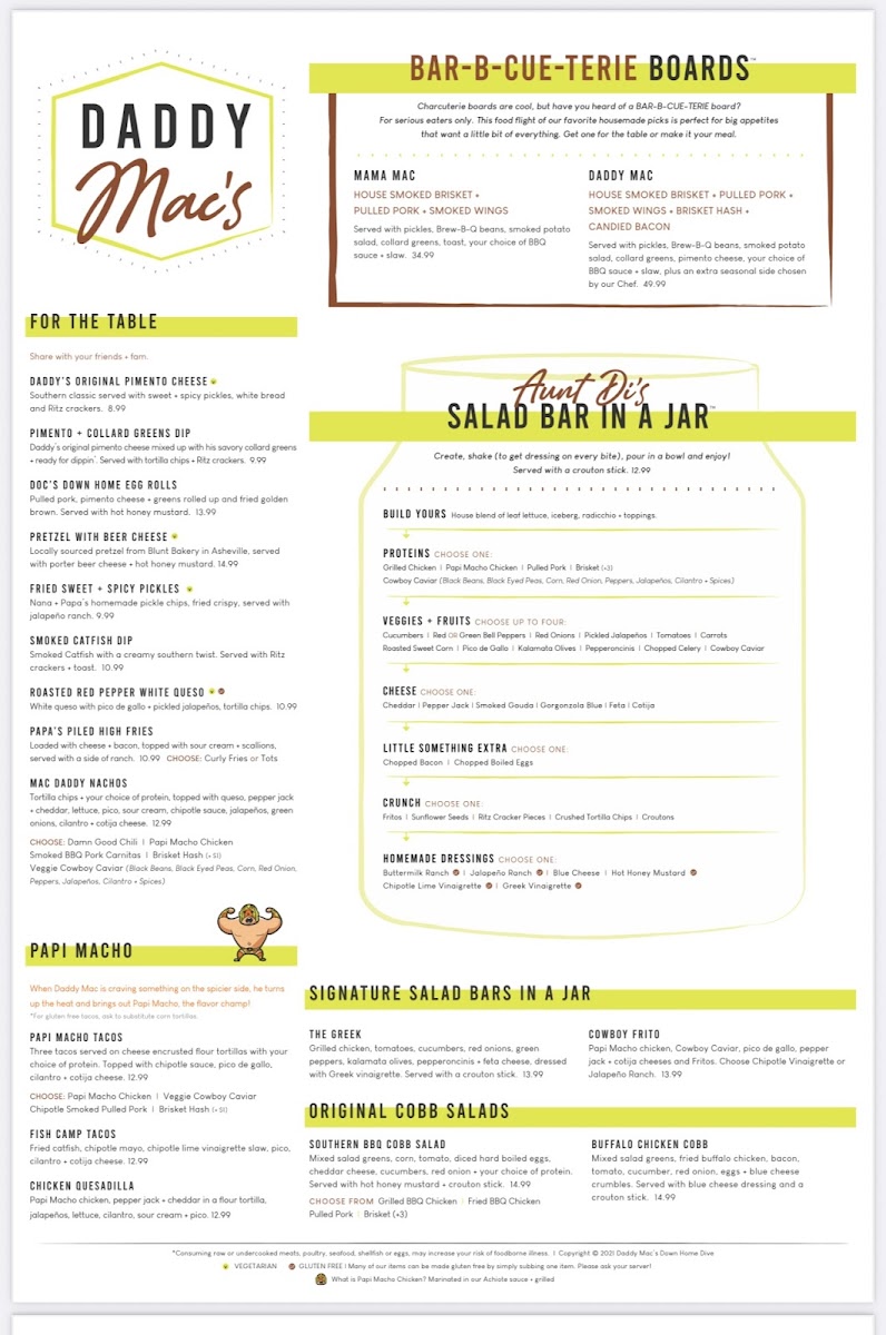 Daddy Mac's Down Home Dive, located in the heart of Asheville, North Carolina, offers a delightful blend of casual dining and heartwarming hospitality. Renowned for its diverse menu, the restaurant showcases mouthwatering options like gouda pulled pork sandwiches and the decadent Mama Mac Board, perfect for sharing. The attentive staff, highlighted by friendly servers like Tim and Bella, enhance the dining experience with personalized recommendations. With a laid-back atmosphere ideal for watching sports and enjoying live music, Daddy Mac's is a local gem that promises delicious food and memorable moments, making every visit feel like a homecoming.